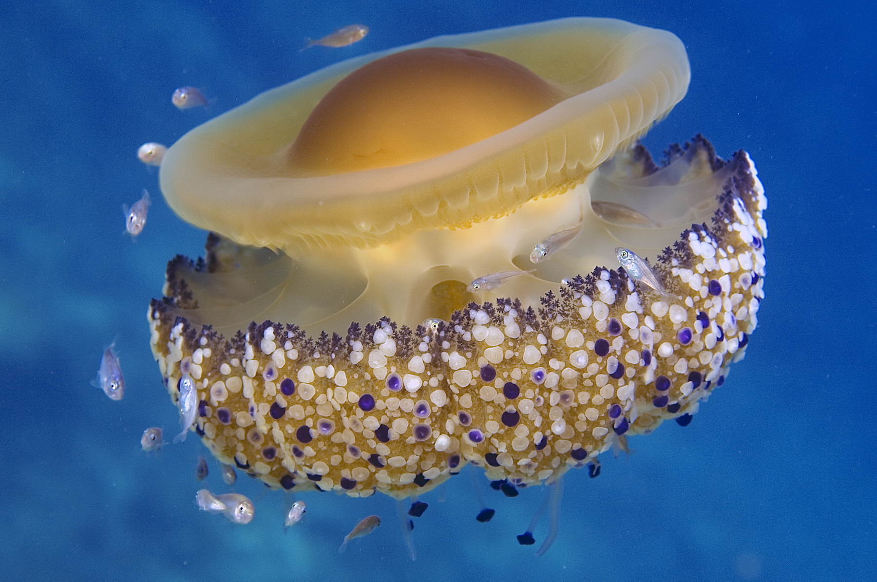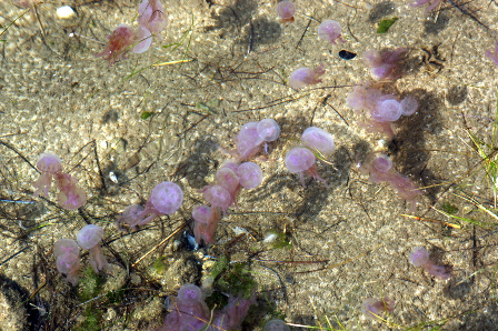 Na fotografiji (foto: Tihomir Makovec): Mesečinka (Pelagia noctiluca) v letošnjem poletju povzroča velike probleme na sredozemskih španskih in francoskih plažah. V severnem Jadranu je bila številna v letih 2004–2007, še bolj pa 1977–1986.