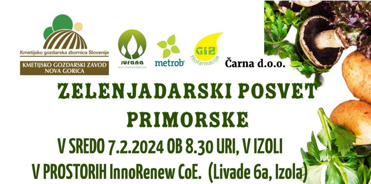 Študente in študentke Sredozemskega kmetijstva vabimo na Zelenjadarski posvet Primorske, ki ga organizira Kmetijsko gozdarski zavod Nova Gorica in bo potekal 7. 2. 2024 v Izoli v prostorih InnoRenew (Livade 6a, Izola).