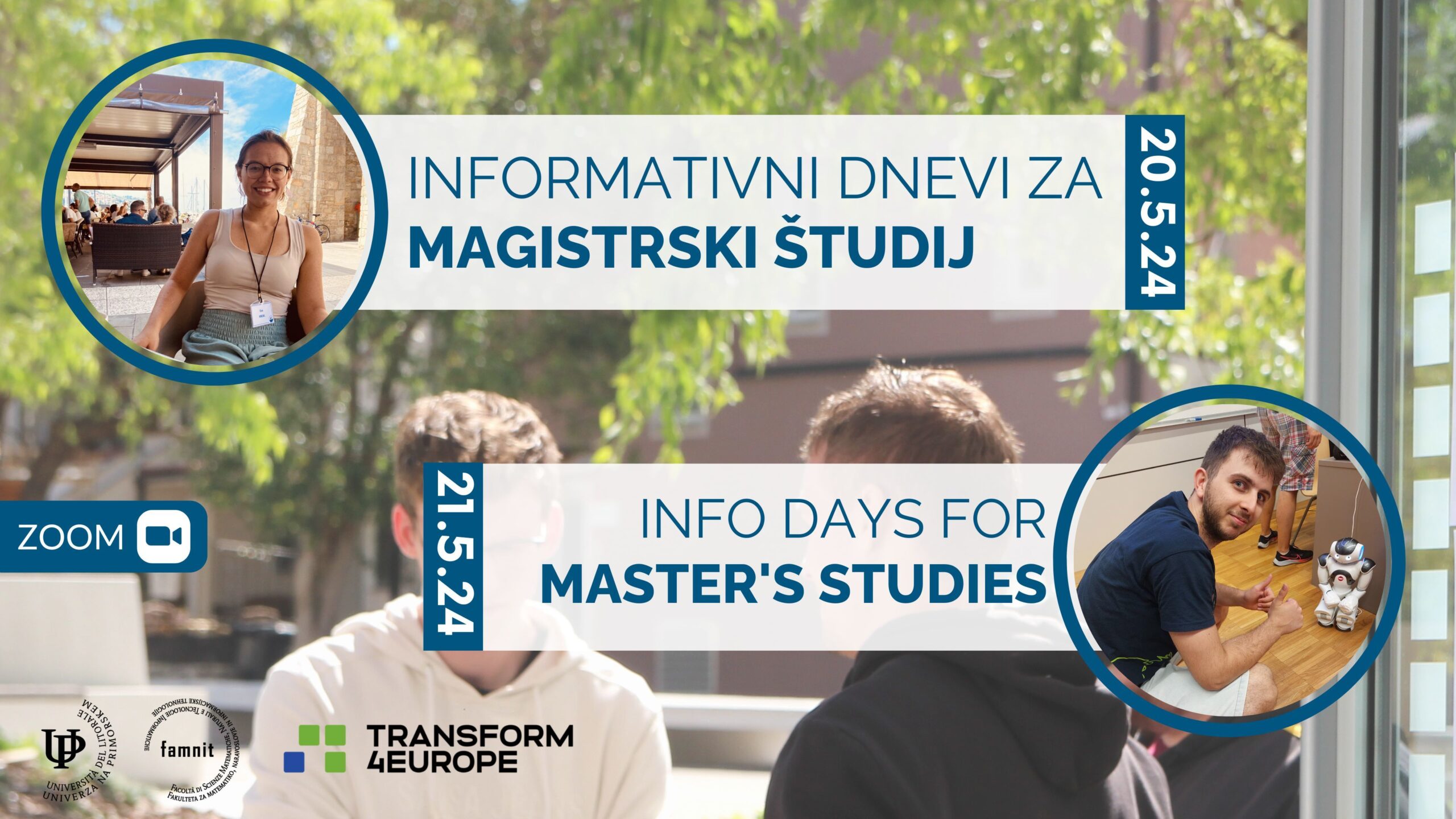 If you are interested in studying at UP FAMNIT or you are still undecided about your postgraduate studies, join our Online Info Week for Master’s study programmes from 20 May to 21 May 2024!